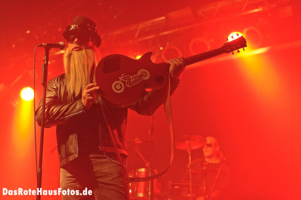 ElZZZZZorro ist natürlich ein ZZ Top Cover, was unschwer an den charakteristischen Bärten zu erkennen ist. Die sparsame 3-Mann-Besetzung erlaubt ihnen sogar eine eigene Vorband, die allerdings mit den gleichen Musikern auskommen muss wie die Hauptband.