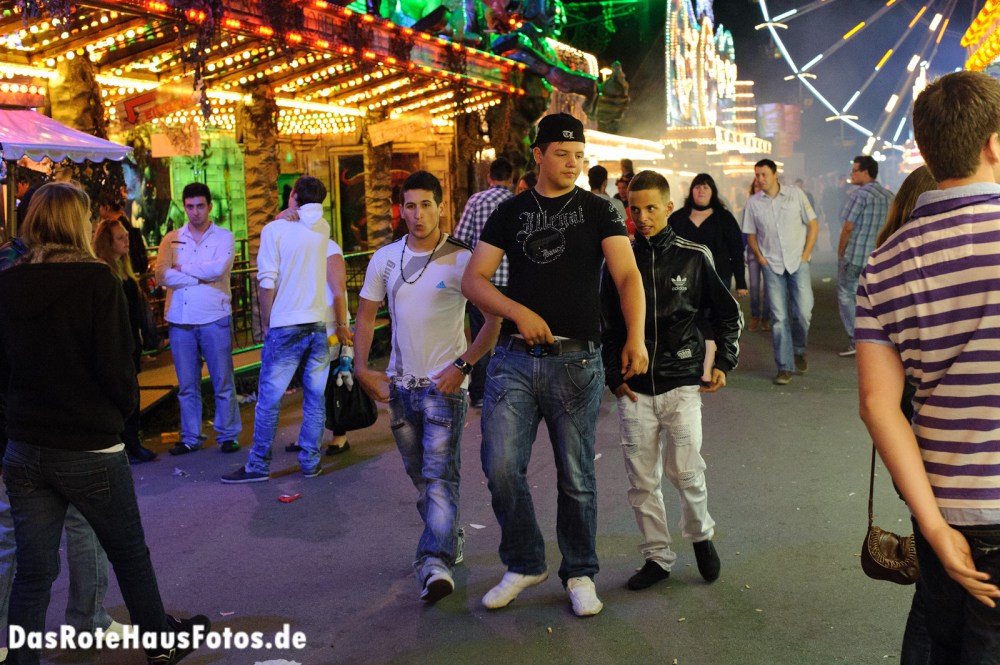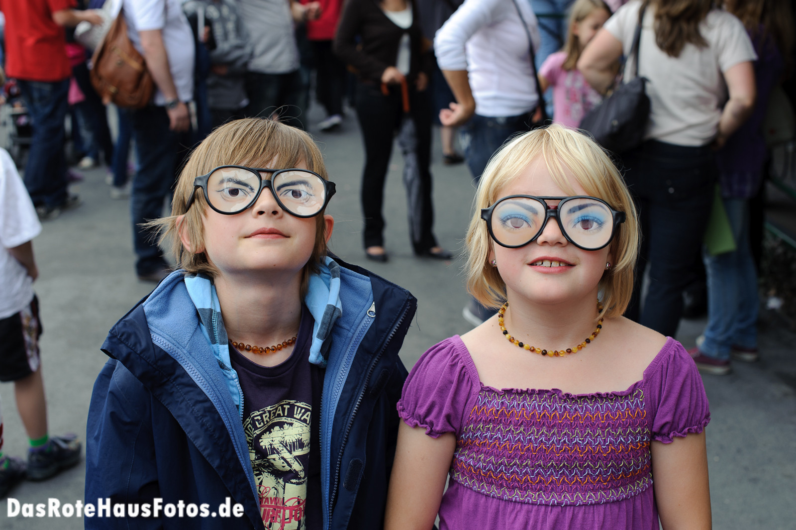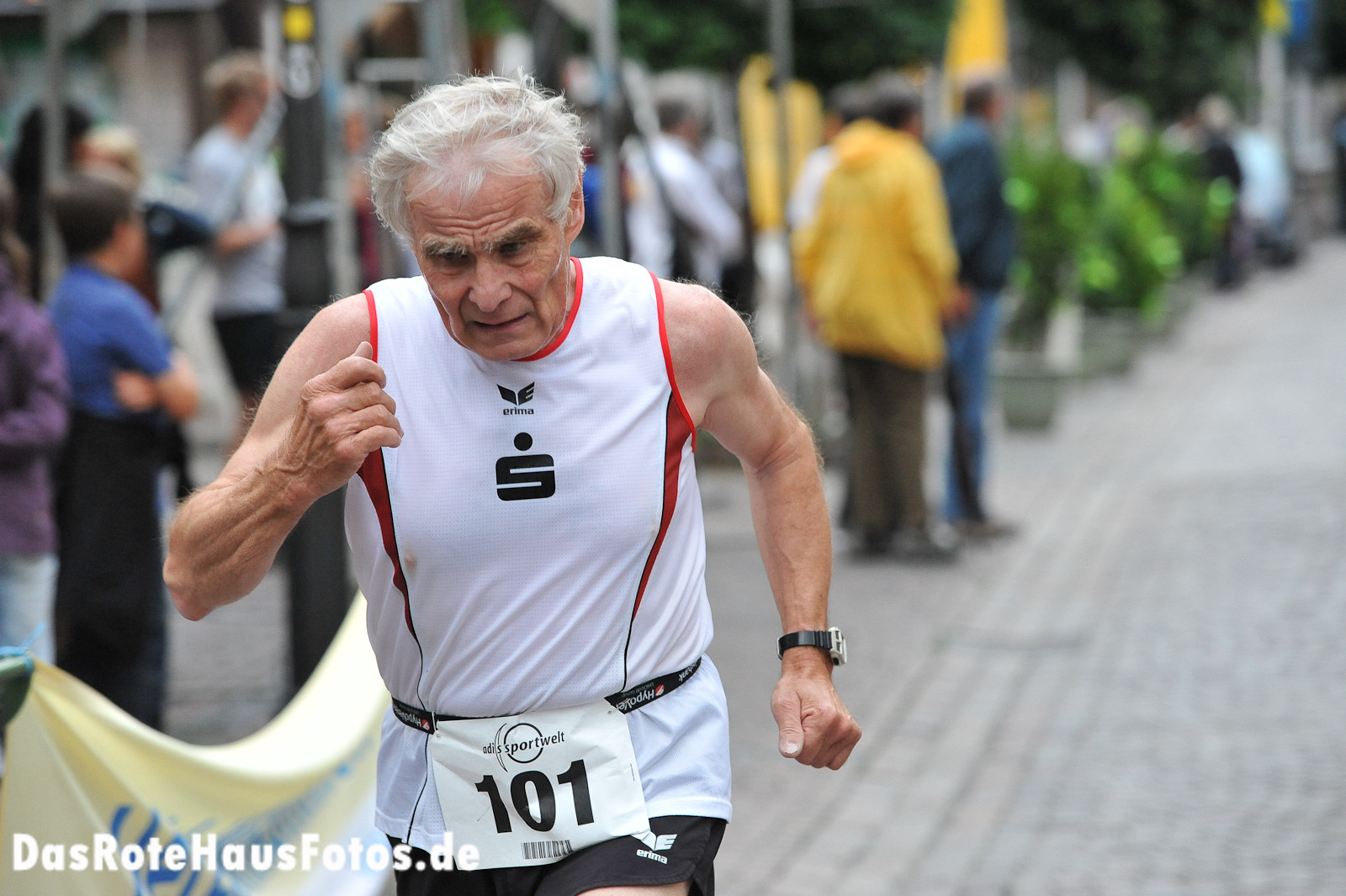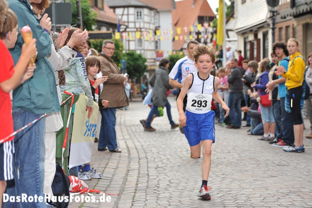 Das jährliche Laufereignis für die ganze Familie. Wer nicht eigene Kinder auf die Strecke schickt (ab Grundschulalter) und dann im Zielbereich inständig auf deren wohlbehaltenes Eintreffen hofft, geht gerne auch mal selber auf die Strecke und lässt die Familie am Rand derselben zwecks Anjubeln zurück. Was die Geduld der dort Ausharrenden schon mal arg strapazieren kann („Mann, wann kommt denn jetzt endlich der Papa!“), denn sie verfügen praktisch nie über eine Marschtabelle ihrer laufenden Liebsten („Wenn ich einen 5:20er Schnitt mache und ihr bei KM 1,8 steht, dann…) und befürchten ohnehin insgeheim, die Laufenden könnten irgendwo auf der Strecke bleiben. Was nicht ganz unberechtigt ist, denn die Laufrunde hat zwar außer etwas buckligem Kopfsteinpflaster und leichten Steigungen keine besonders tückischen Eigenarten, die dem Läufer die Laufkraft rauben würden – ABER sie führt direktemang am Festgelände vorbei, verlockt also Rund um Runde mit allerlei wesentlich weniger anstrengenden Vergnügungen. Die Zeiten derjenigen, die ins Ziel kamen, finden sich auf der Veranstalterseite , noch mehr Bilder hat ein spezialisierter Laufreporter gemacht, und die gibt es hier.