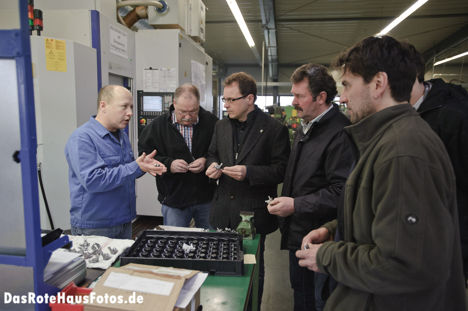 Seit November herrschte Ruhe auf meinem Fotoblog – aber nicht, weil ich die Kamera beiseite gelegt hätte, sondern weil ich eine Reihe von Fotoaufträgen übernommen habe, die halt nicht für (dieses) Web bestimmt waren. Das waren Bands, aber auch viele Bilder für den Kommunalwahlkampf der ÜWG (Das ist eine Art „Michelstadt-Partei“, die aber keine Partei ist, weil erstens überparteilich und zweitens Wählergemeinschaft. Zur speziellen Dialektik der überparteilichen Partei und ihrer politischen Praxis der parteilichen Überparteilichkeit schreibe ich später mal was.) Die Ergebnisse liegen nun in jedem Michelstädter Briefkasten. Hier ein paar Fotos von zwei der „assignments“: Einmal mit Landrat (überparteilich), Bürgermeister (parteilos) und einigen Überparteilichen am Bahnhof, an dem vor allem die Pendlerparkplätze ausgebaut werden sollen. Zum anderen mit kaum parteilich, sondern vor allem technisch und wirtschaftlich interessierten ÜWGlern bei einem Industriebetrieb in Vielbrunn, der Teile für die PKW-Herstellung produziert.