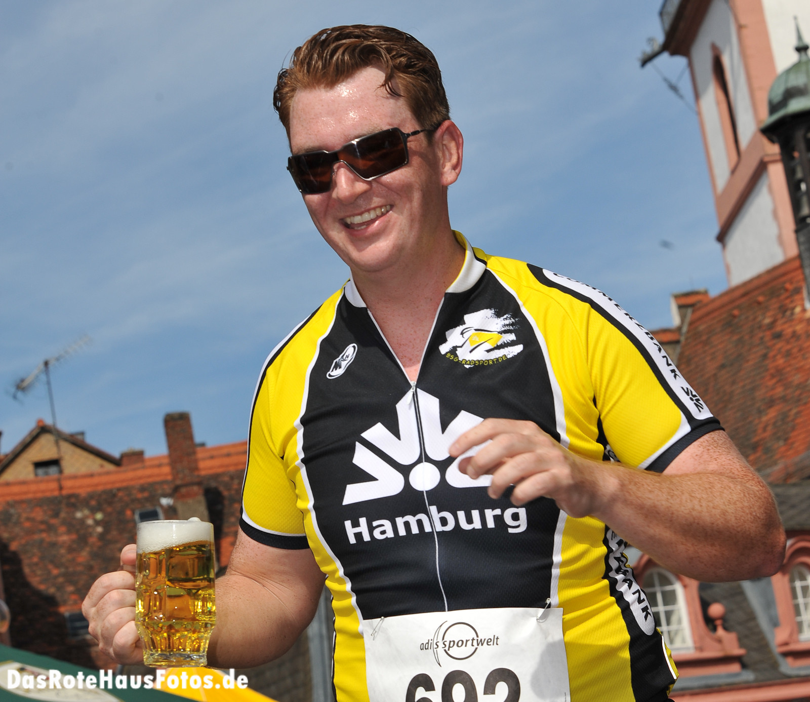 Das jährliche Laufereignis für die ganze Familie. Wer nicht eigene Kinder auf die Strecke schickt (ab Grundschulalter) und dann im Zielbereich inständig auf deren wohlbehaltenes Eintreffen hofft, geht gerne auch mal selber auf die Strecke und lässt die Familie am Rand derselben zwecks Anjubeln zurück. Was die Geduld der dort Ausharrenden schon mal arg strapazieren kann („Mann, wann kommt denn jetzt endlich der Papa!“), denn sie verfügen praktisch nie über eine Marschtabelle ihrer laufenden Liebsten („Wenn ich einen 5:20er Schnitt mache und ihr bei KM 1,8 steht, dann…) und befürchten ohnehin insgeheim, die Laufenden könnten irgendwo auf der Strecke bleiben. Was nicht ganz unberechtigt ist, denn die Laufrunde hat zwar außer etwas buckligem Kopfsteinpflaster und leichten Steigungen keine besonders tückischen Eigenarten, die dem Läufer die Laufkraft rauben würden – ABER sie führt direktemang am Festgelände vorbei, verlockt also Rund um Runde mit allerlei wesentlich weniger anstrengenden Vergnügungen. Die Zeiten derjenigen, die ins Ziel kamen, finden sich auf der Veranstalterseite , noch mehr Bilder hat ein spezialisierter Laufreporter gemacht, und die gibt es hier.